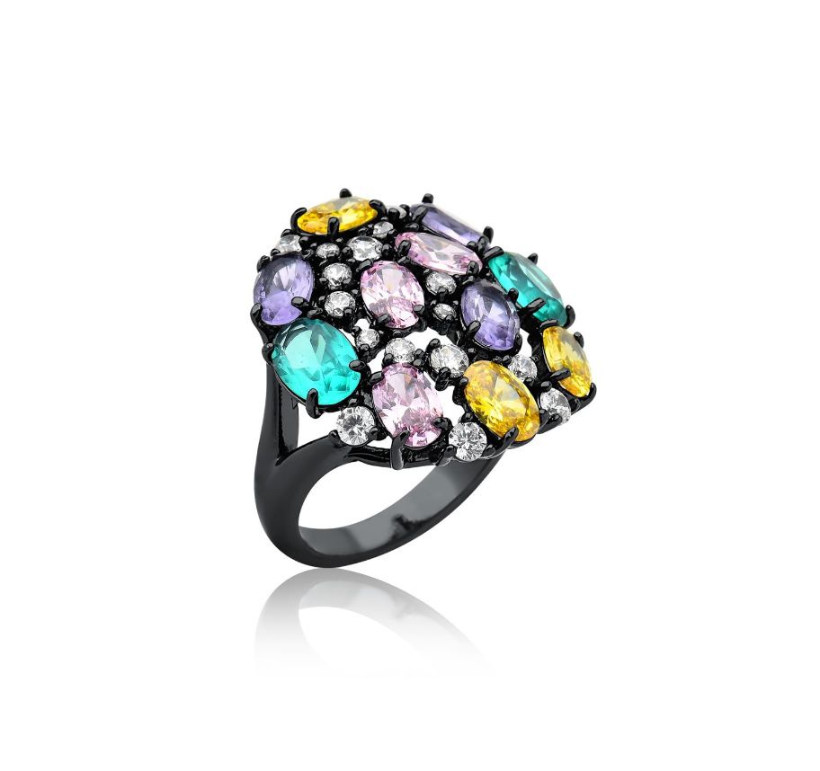 ANEL REDONDO COM ZIRCÔNIAS COLORIDAS BANHADA A RÓDIO NEGRO