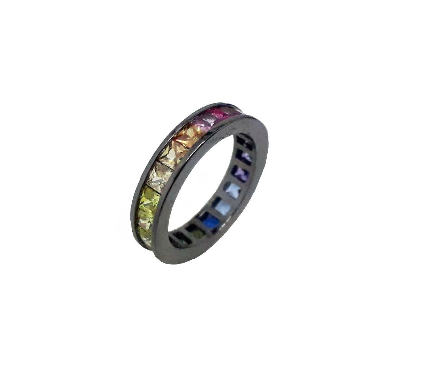 ANEL COM CRAVAÇÃO COLORIDA BANHADO A RÓDIO NEGRO