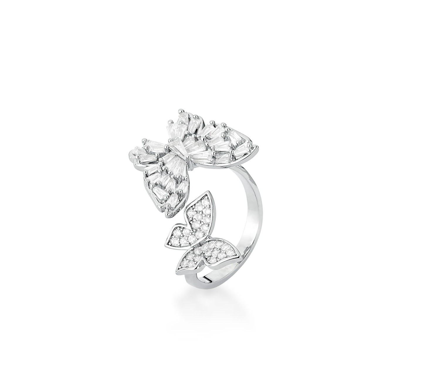ANEL BORBOLETAS CRAVEJADAS BANHADO A RÓDIO BRANCO