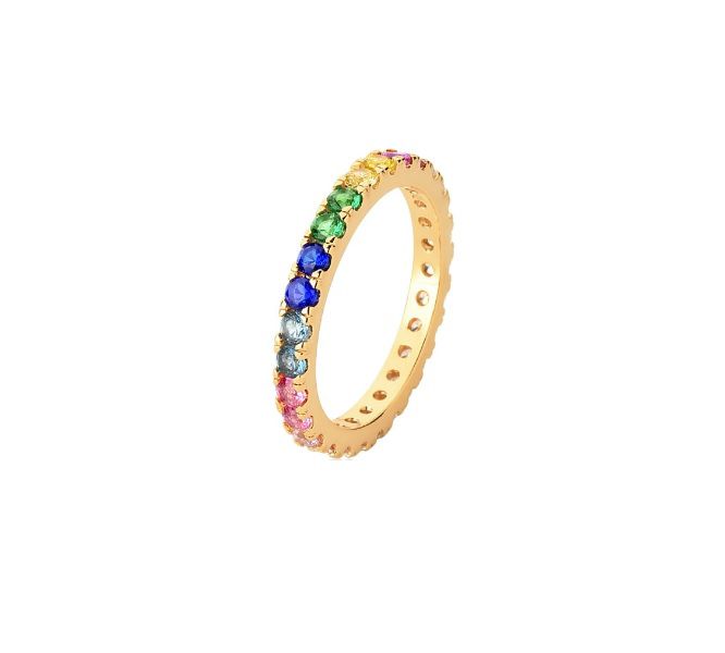 ANEL COM CRAVAÇÃO COLORIDA BANHADO A OURO