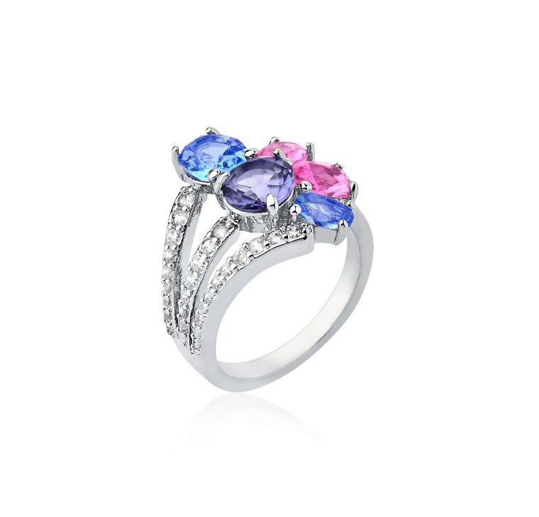 ANEL COM CRAVAÇÃO COLORS BANHADO A RÓDIO BRANCO