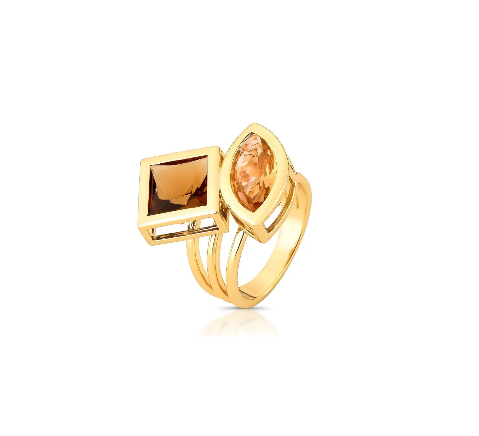 ANEL COM CRISTAIS GEOMÉTRICOS EM TONS DE ÂMBAR BANHADO A OURO