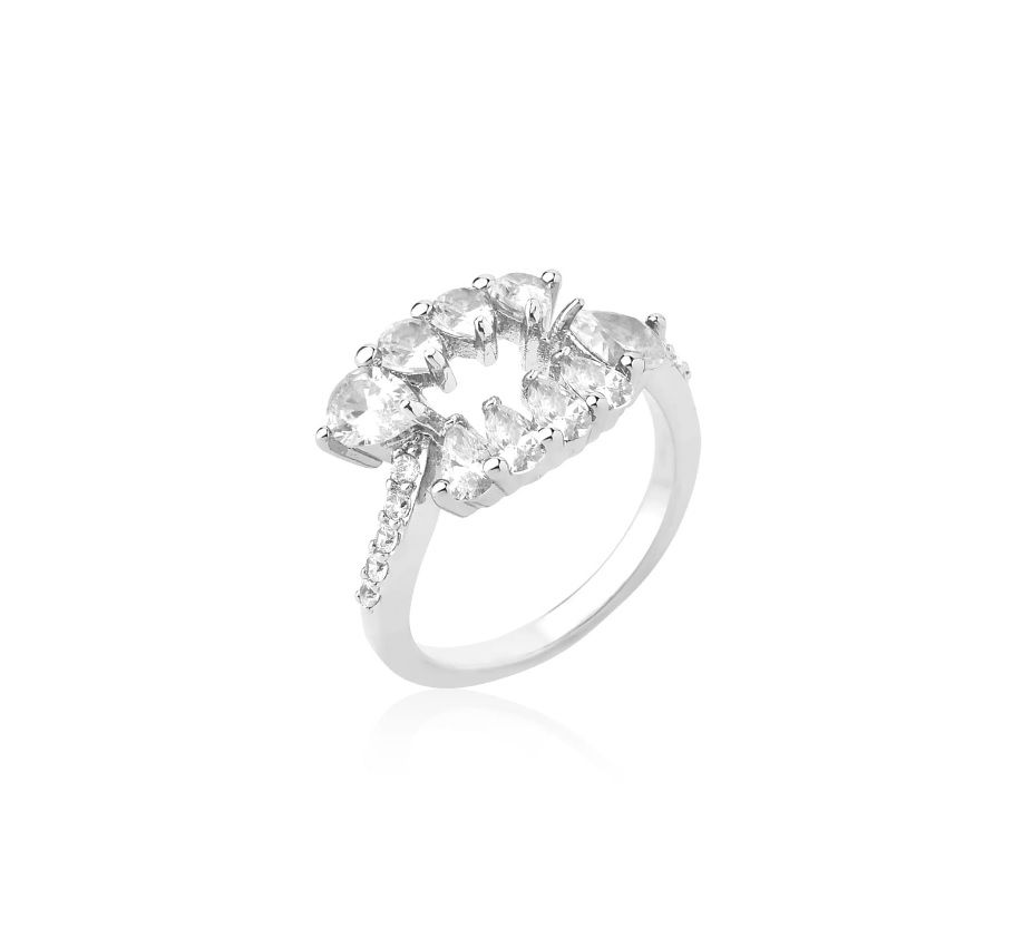 ANEL COM GOTAS CRISTAIS BANHADO A RÓDIO BRANCO