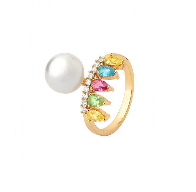 ANEL COM NAVETES COLORIDOS E UMA PÉROLA DE ÁGUA DOCE