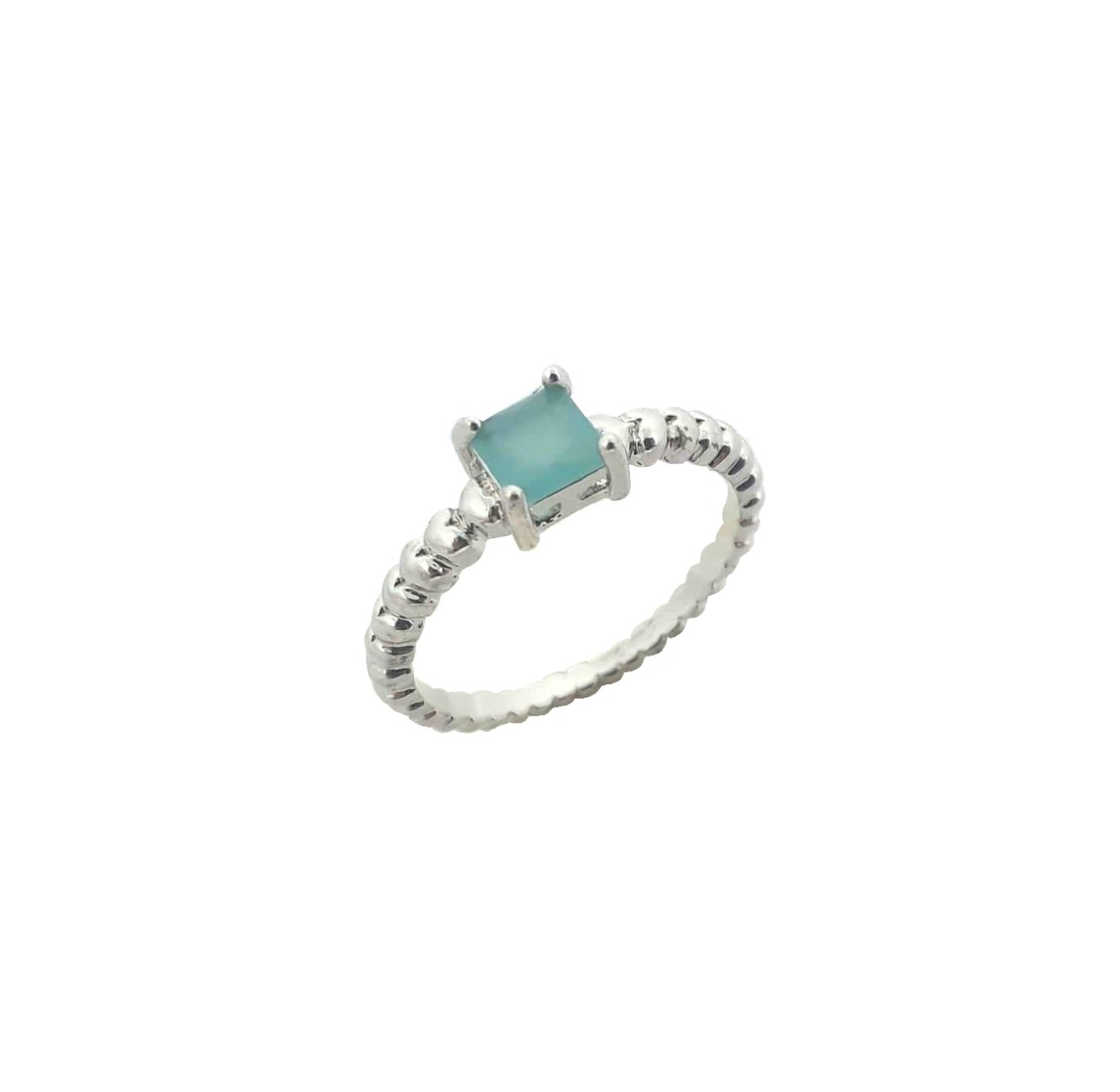 ANEL COM PEDRA QUADRADA ACQUA BANHADO A RÓDIO BRANCO
