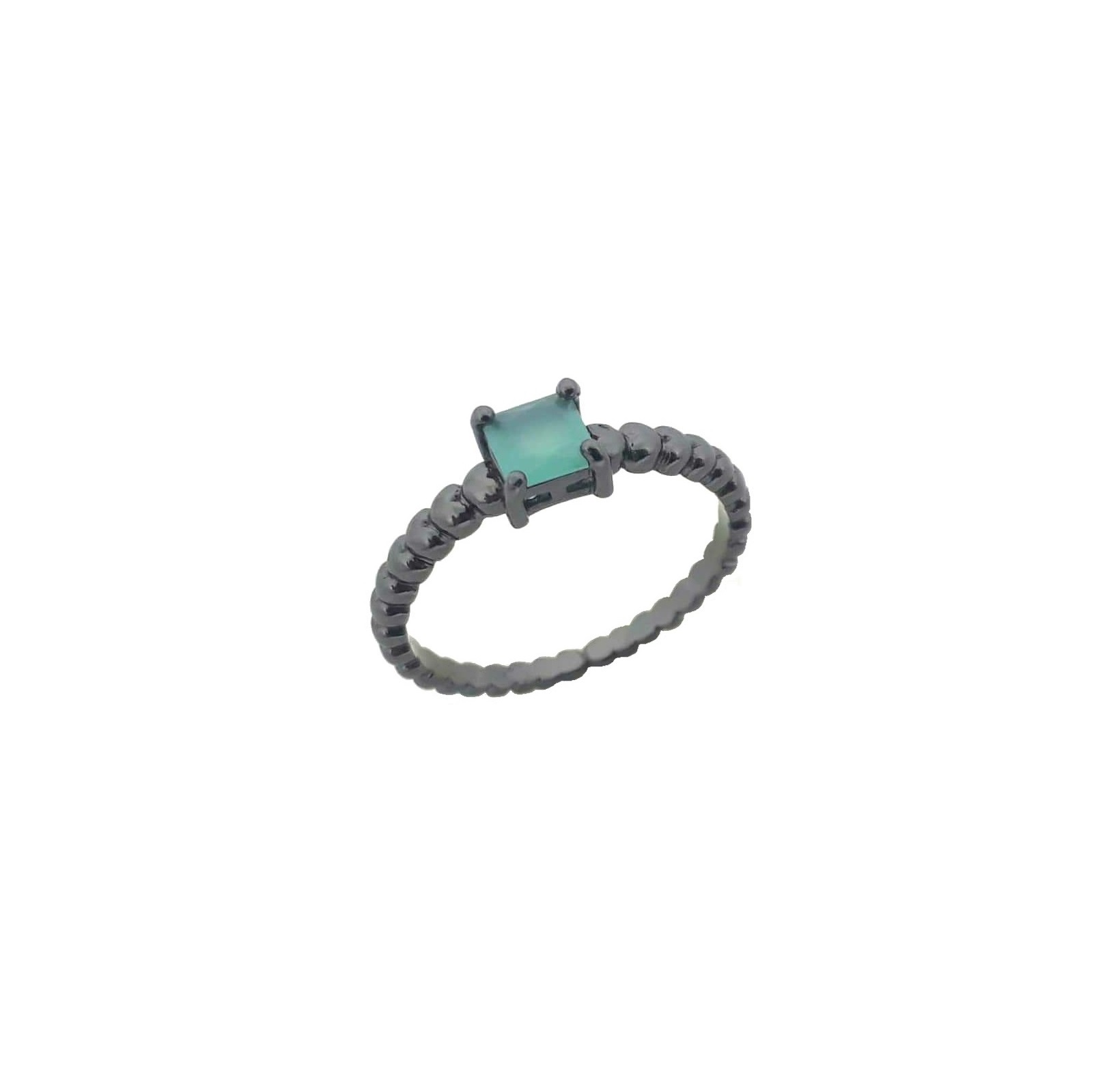 ANEL COM PEDRA QUADRADA ACQUA BANHADO A RÓDIO NEGRO