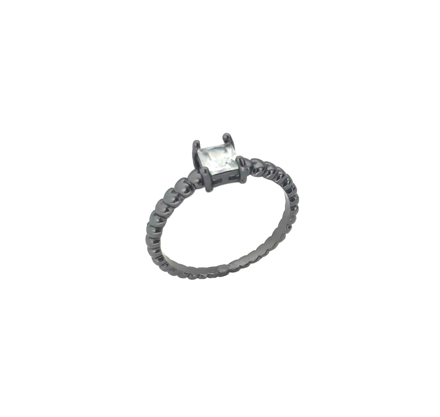 ANEL COM PEDRA QUADRADA CRISTAL BANHADO A RÓDIO NEGRO