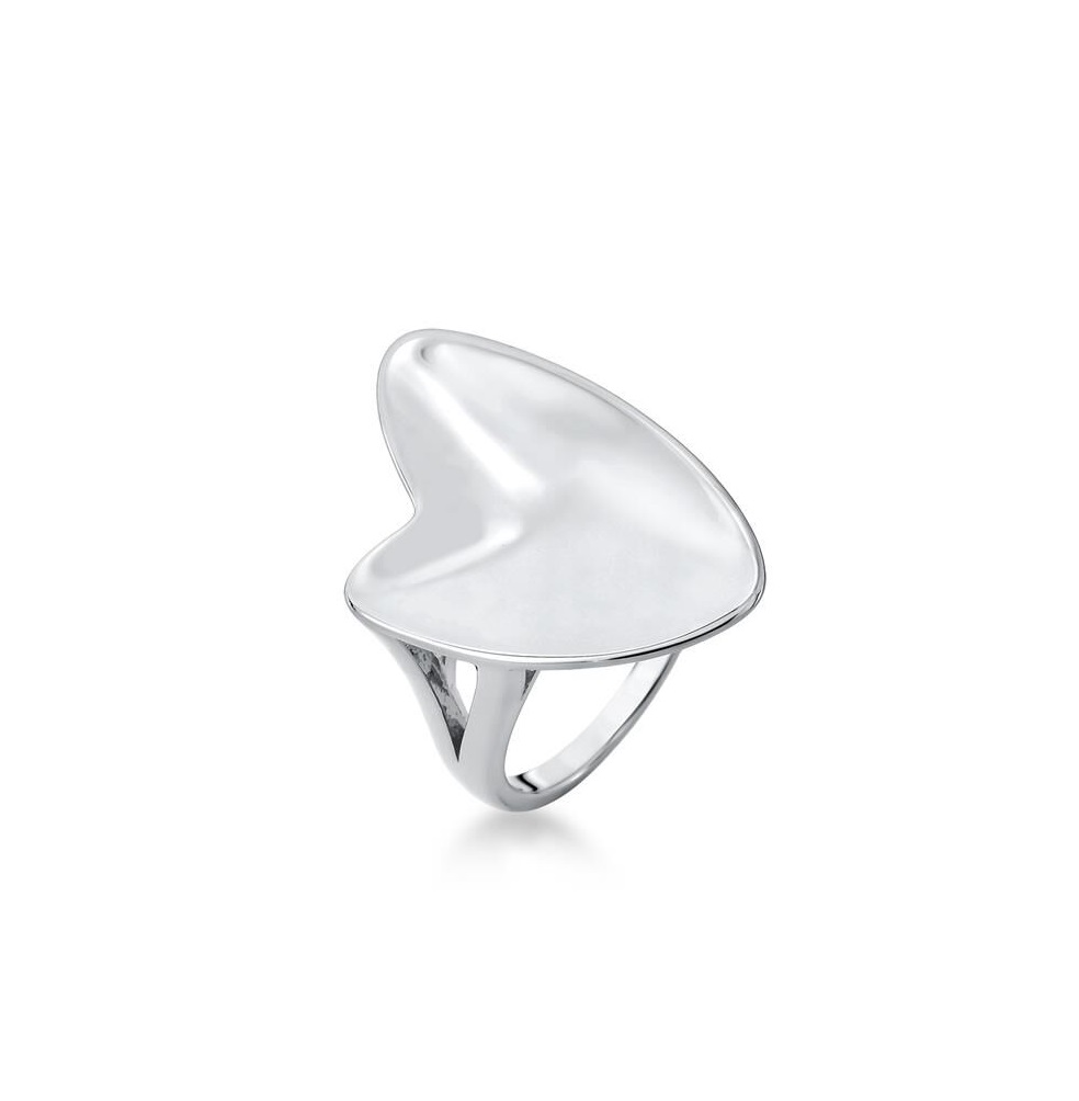 ANEL CORAÇÃO LISO BANHADO A RÓDIO BRANCO