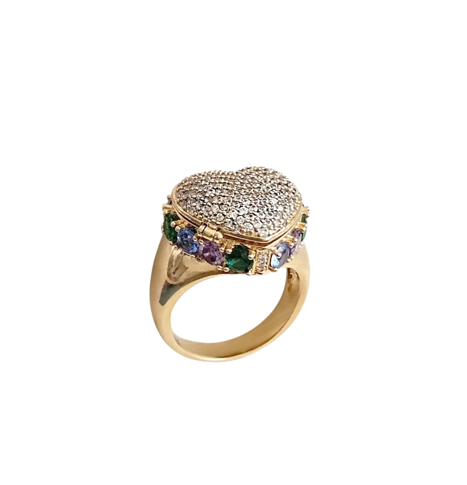 Anel Coração Relicário Cravejado Banhado a Ouro