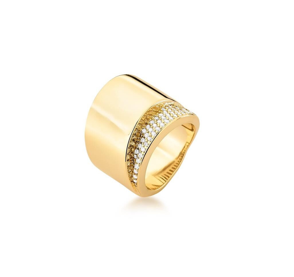 ANEL CURVO LISO COM ZIRCÔNIAS BANHADO A OURO