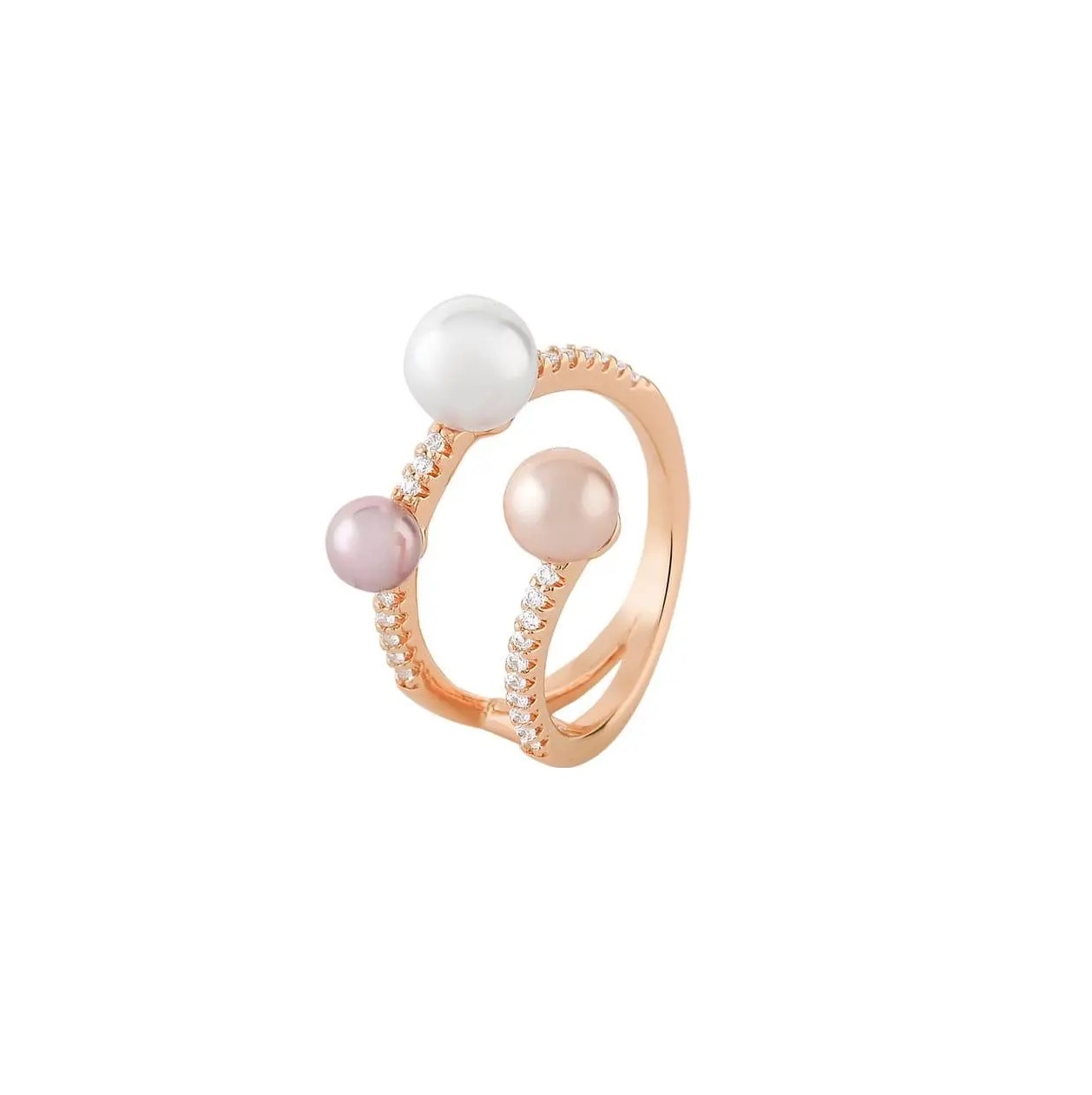 Anel Duas Fileiras Cravejdas com Pérolas em Tons Banhado a Ouro Rosê