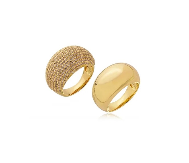 ANEL DUPLO COM PEÇA CRAVEJADA BANHADO A OURO
