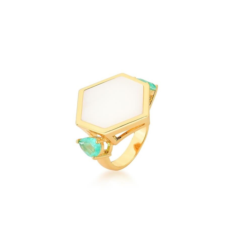 ANEL EM MADREPÉROLA E GOTAS BANHADO A OURO