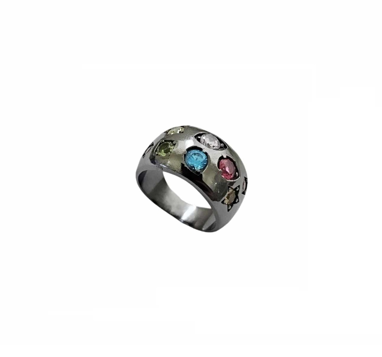 ANEL LARGO COM PEDRAS COLORIDAS BANHADO A RÓDIO NEGRO