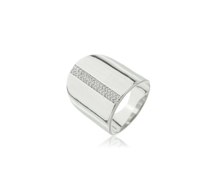ANEL LARGO LISO COM UMA FILEIRA CRAVEJADA BANHADO A RÓDIO BRANCO