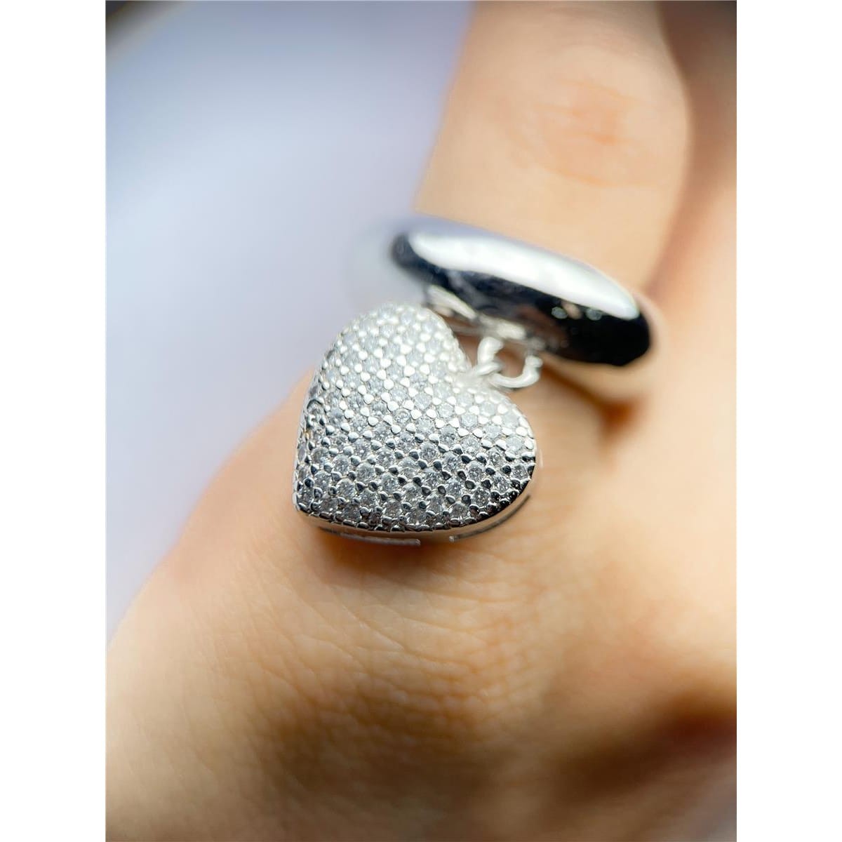 ANEL LISO COM CORAÇÃO CRAVEJADO BANHADO A RÓDIO