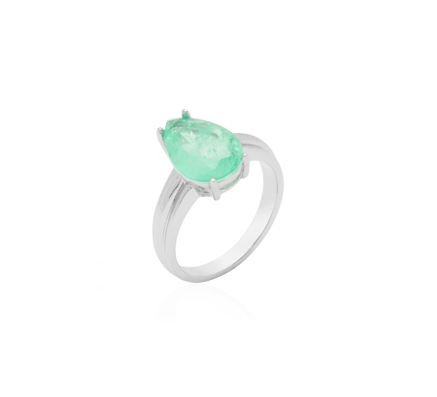 ANEL LISO COM GOTA CENTRAL ESMERALDA COLOMBIANA FUSION BANHADO A RÓDIO BRANCO