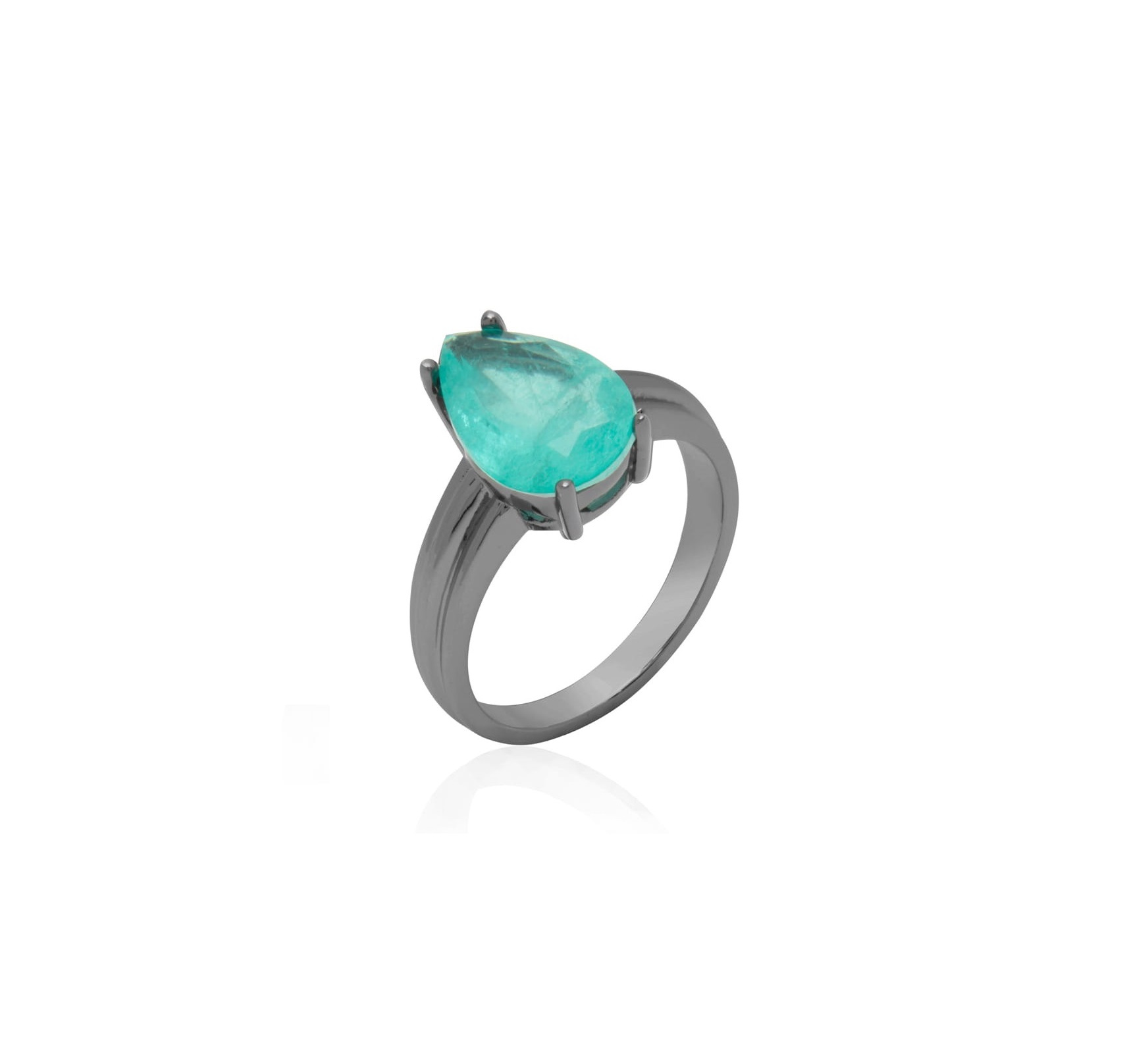 ANEL LISO COM GOTA CENTRAL TURMALINA FUSION BANHADO A RÓDIO NEGRO