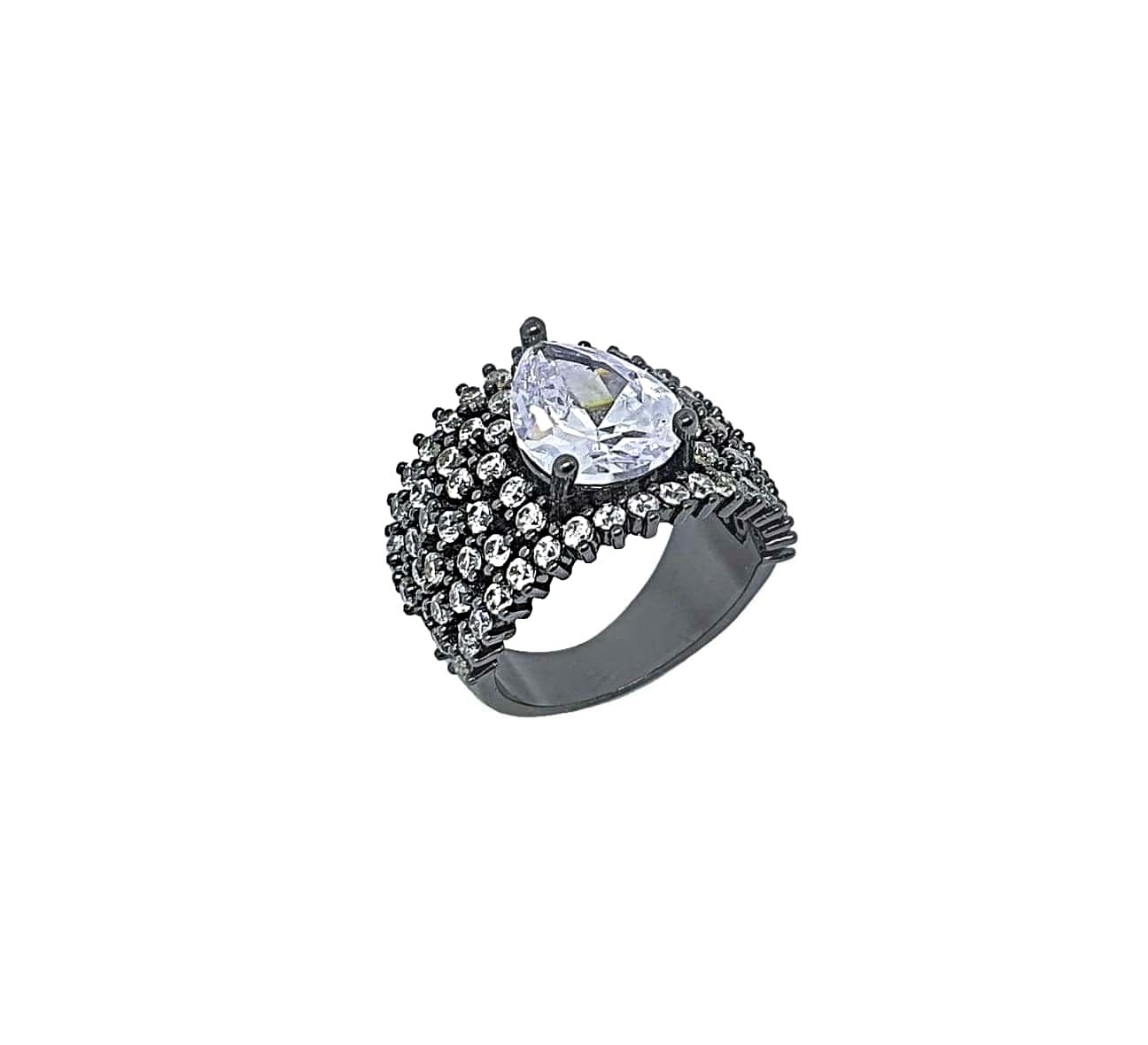 ANEL LUXO COM GOTA CRISTAL BANHADO EM RÓDIO NEGRO