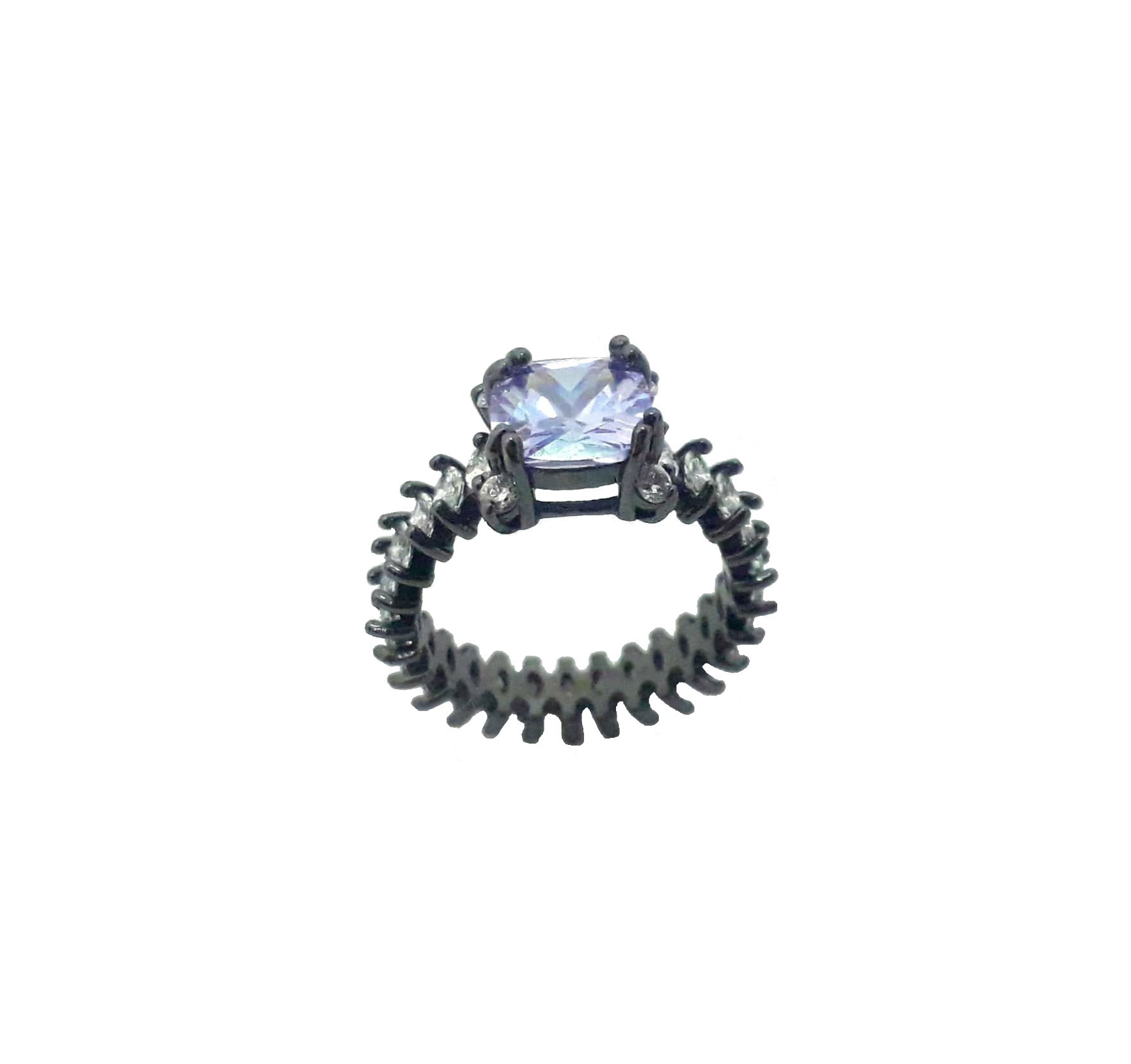 ANEL LUXO SOLITÁRIO AMETISTA BANHADO A RÓDIO NEGRO