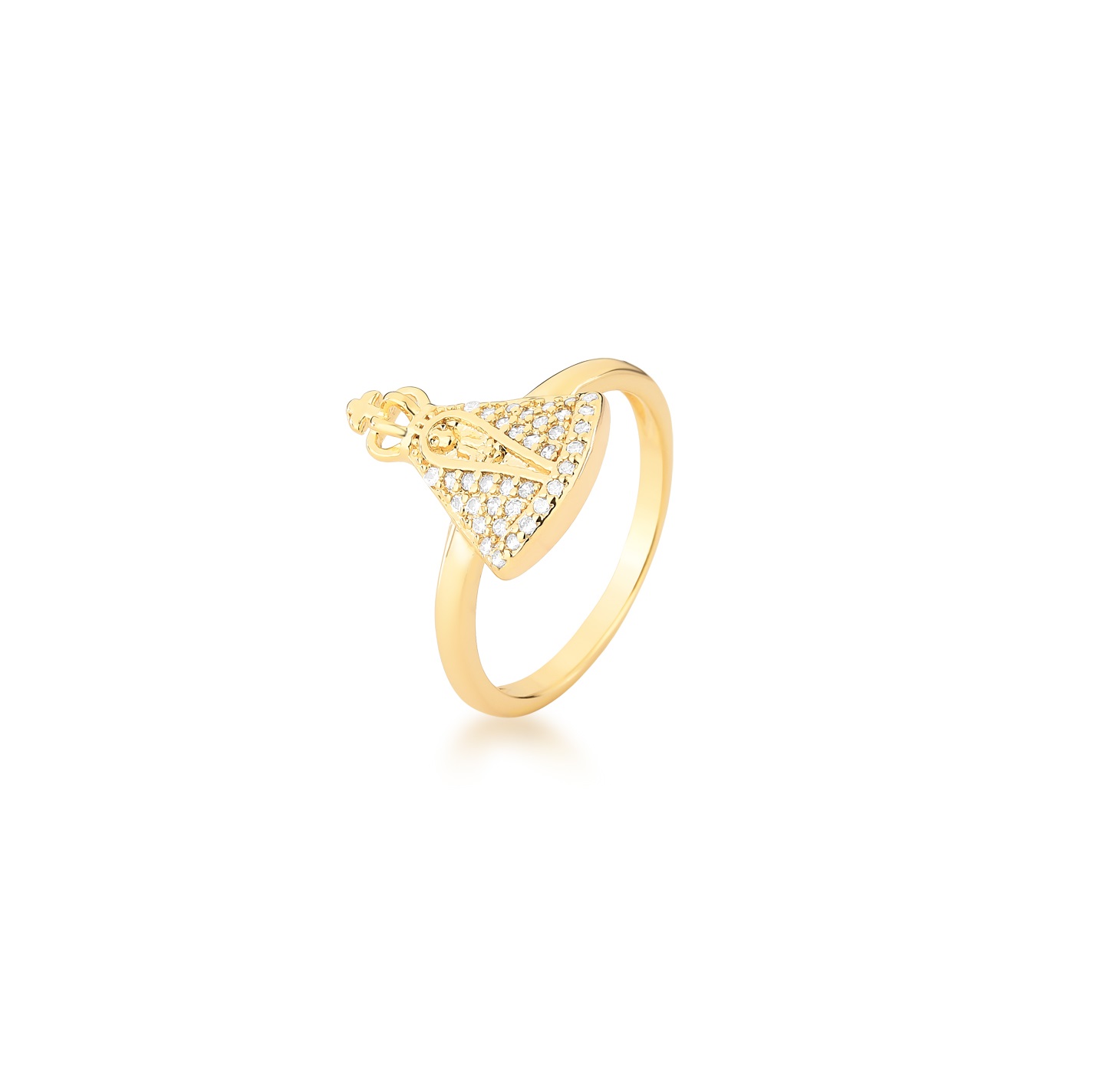 ANEL NOSSA SENHORA MANTO CRISTAL CRAVEJADO BANHADO A OURO