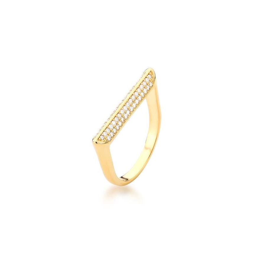 ANEL PARTE SUPERIOR QUADRADA CRAVEJADA BANHADO A OURO