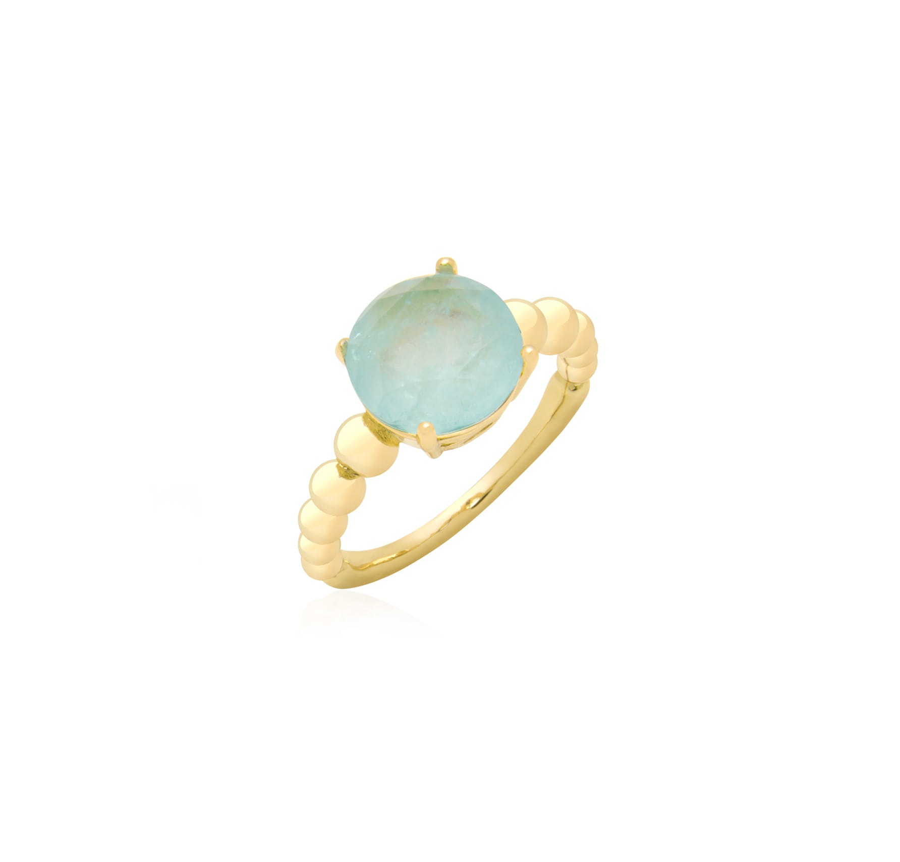 ANEL PEDRA REDONDA ÁGUA MARINHA FUSION BANHADO A OURO
