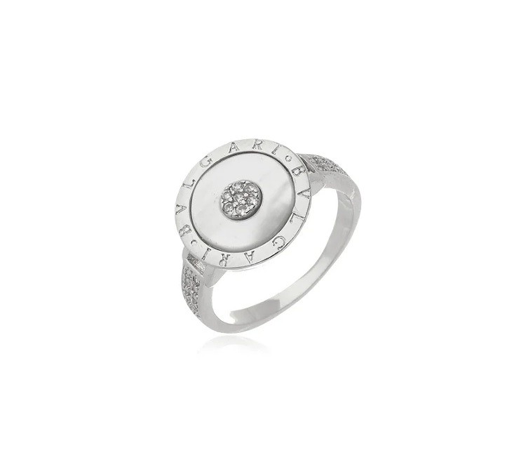 ANEL REDONDO EM MADREPÉROLA E ZIRCÔNIAS BANHADO A RÓDIO BRANCO