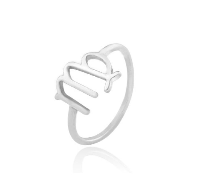 ANEL SIGNO DE VIRGEM BANHADO A RÓDIO BRANCO