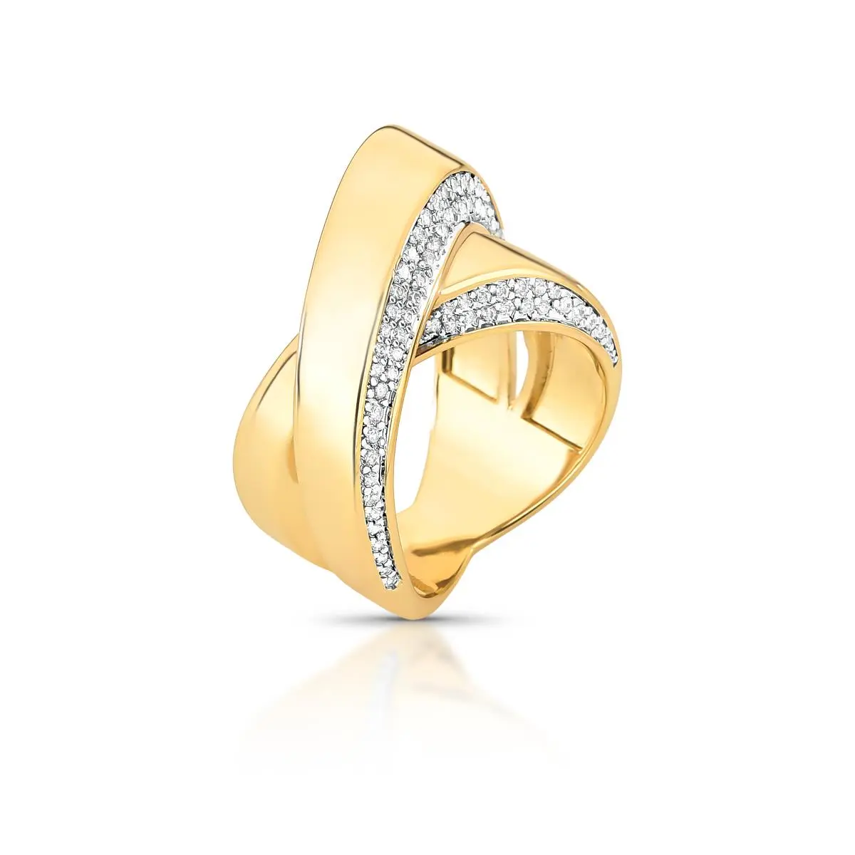 Anel Trançado com Cravação Lateral Banhado a Ouro