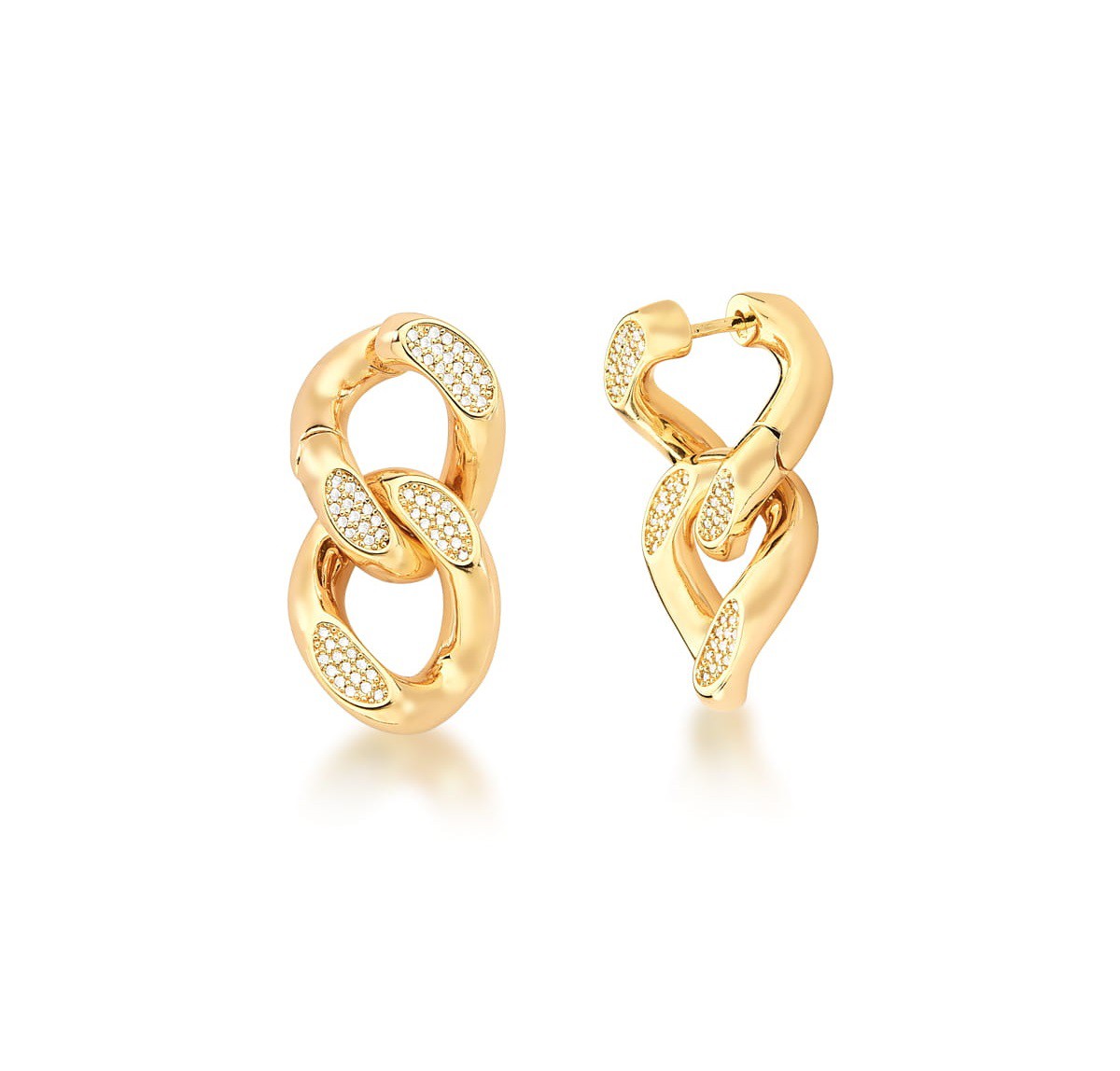 ARGOLA 2 EM 1 COM ELOS LISOS E DETALHES CRAVEJADOS BANHADO A OURO