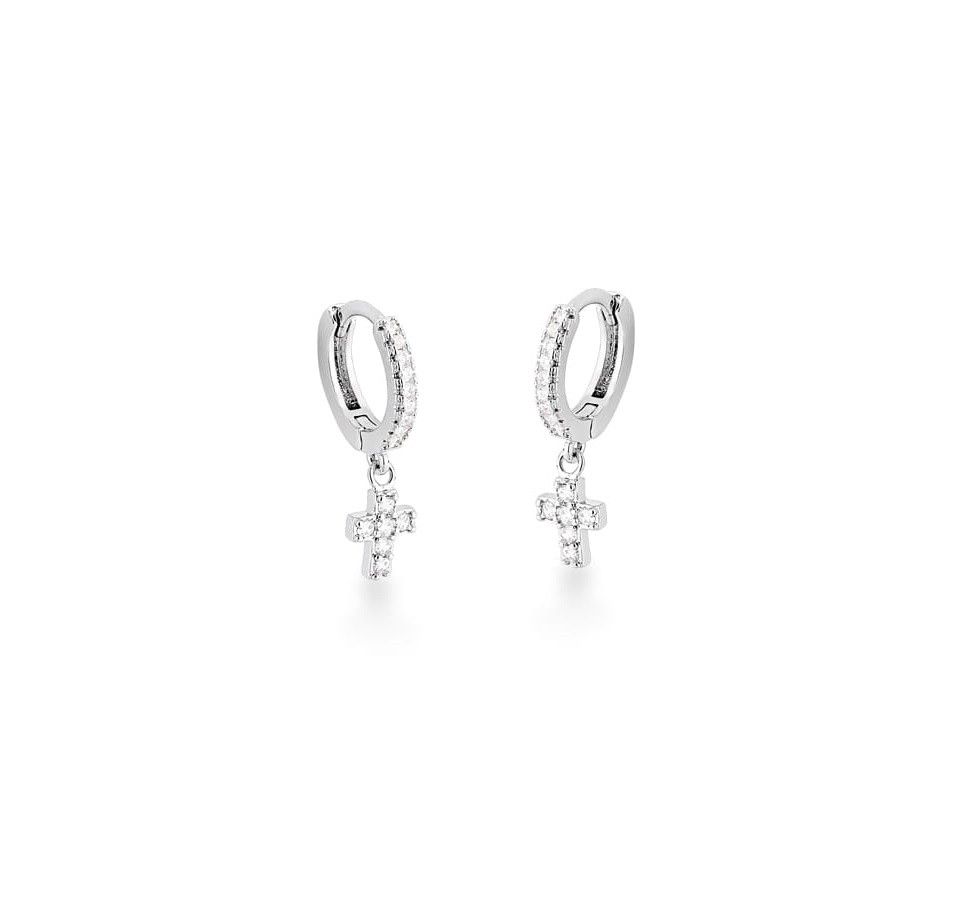 ARGOLA COM PINGENTE DE CRUZ CRAVEJADA BANHADO A RÓDIO