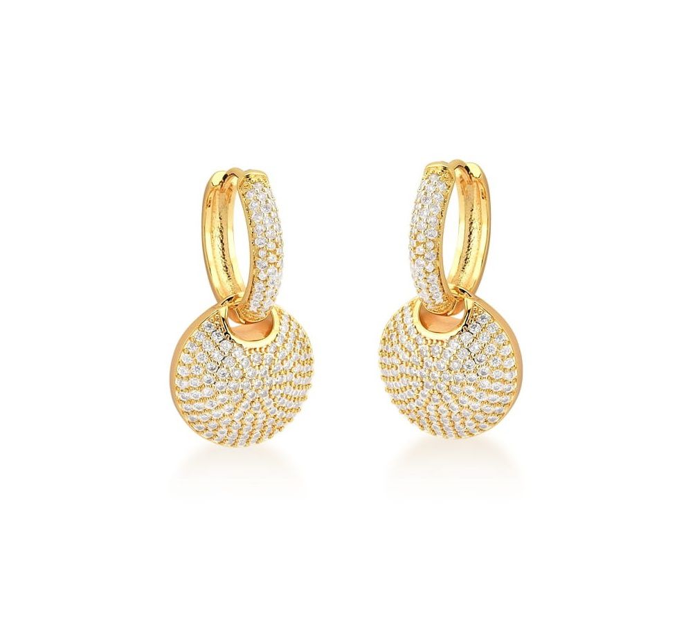 ARGOLA COM PINGENTE REDONDO CRAVEJADO BANHADA A OURO.