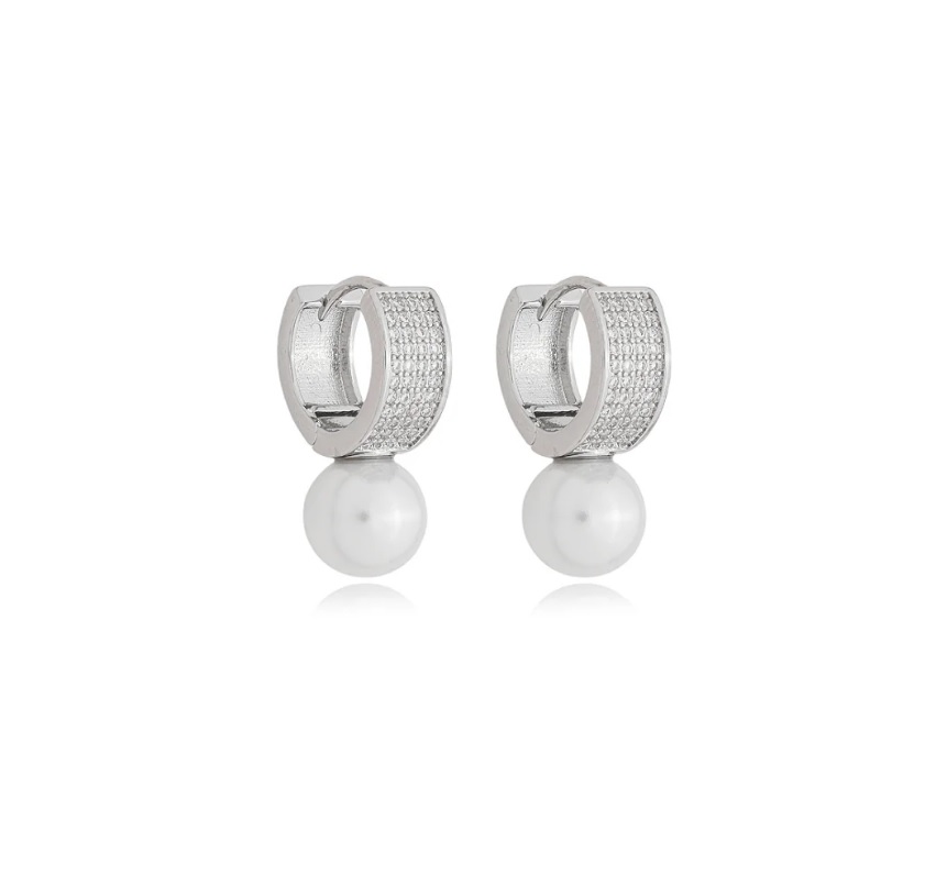 ARGOLA CRAVEJADA COM PÉROLA BANHADO A RÓDIO BRANCO