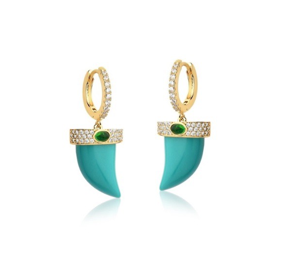 ARGOLA DENTE DE SABRE TURQUESA CRAVEJADA BANHADO A OURO