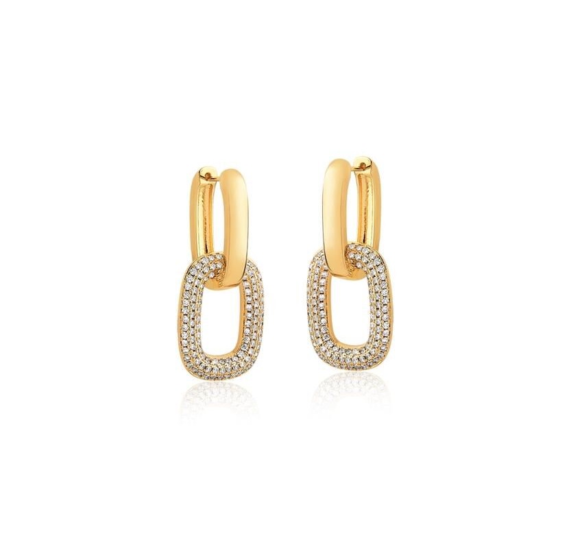 ARGOLA G COM ELO RETANGULAR CRAVEJADO BANHADA A OURO