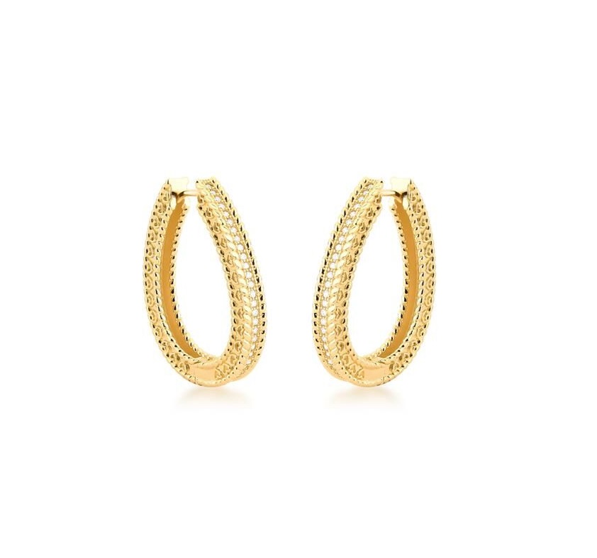 ARGOLA GOTA COM CRAVAÇÃO FRENTE E VERSO BANHADA A OURO