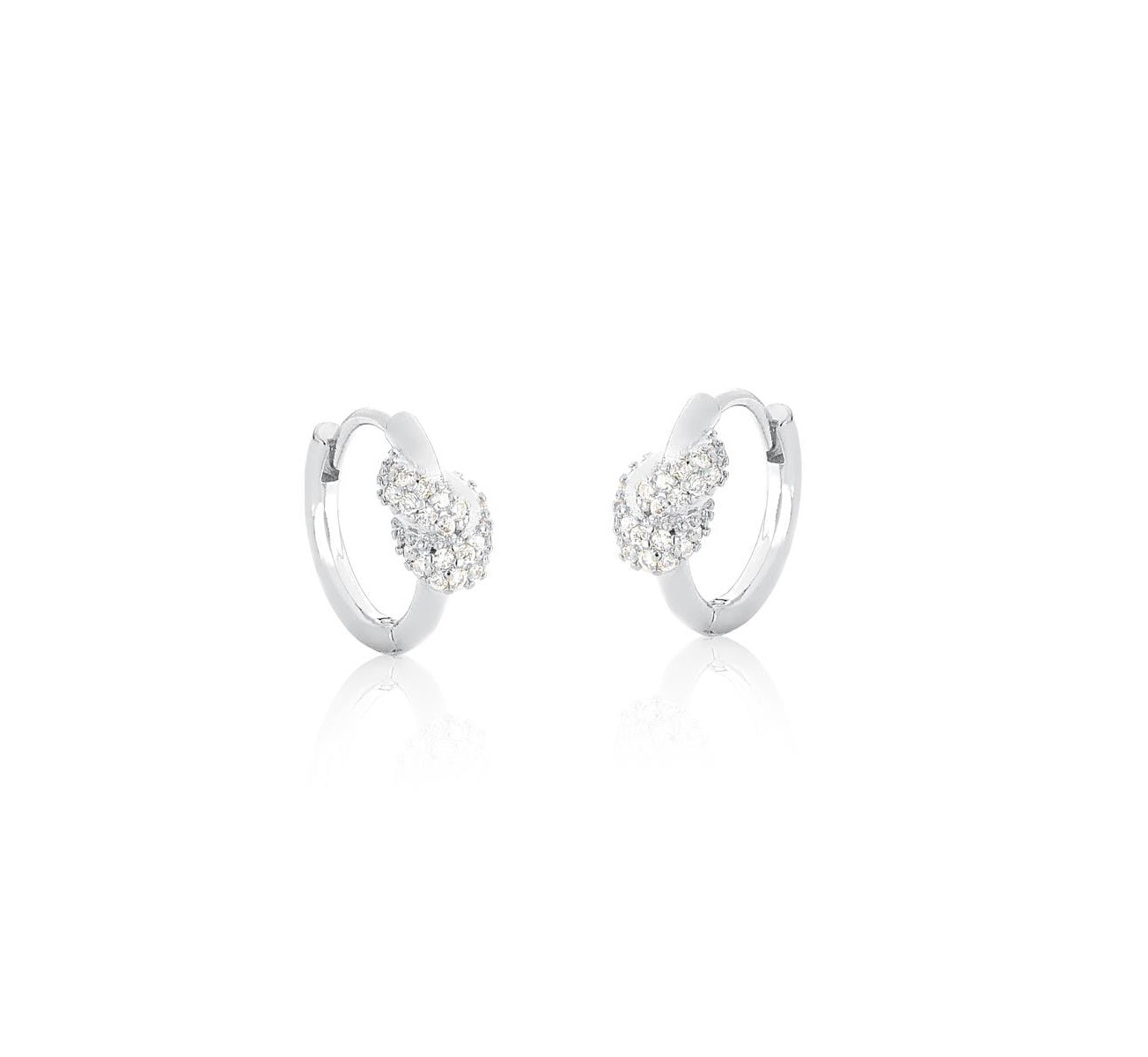 ARGOLA LISA COM NÓ CRAVEJADO BANHADO A RÓDIO BRANCO
