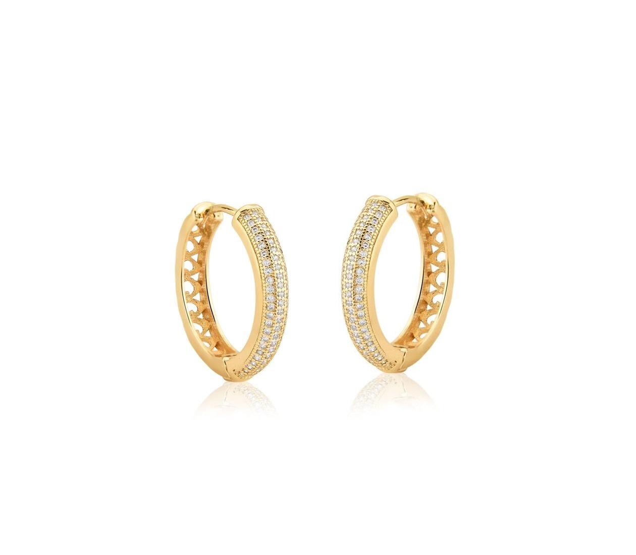 ARGOLA MÉDIA ESTREITA COM CRAVAÇÃO FRONTAL BANHADO A OURO