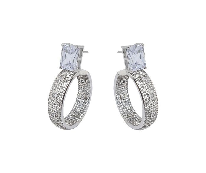 MEIA ARGOLA MICROCRAVEJADA COM BASE RETANGULAR CRISTAL BANHADA A RÓDIO