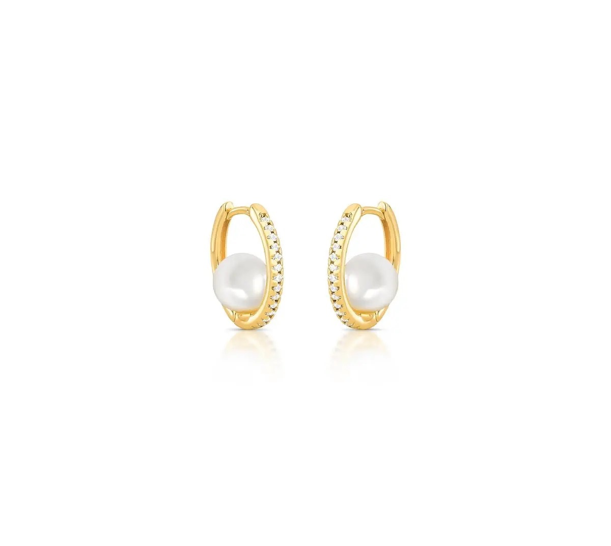 Argola Oval com Cravação Frontal e Pérola Banhada a Ouro