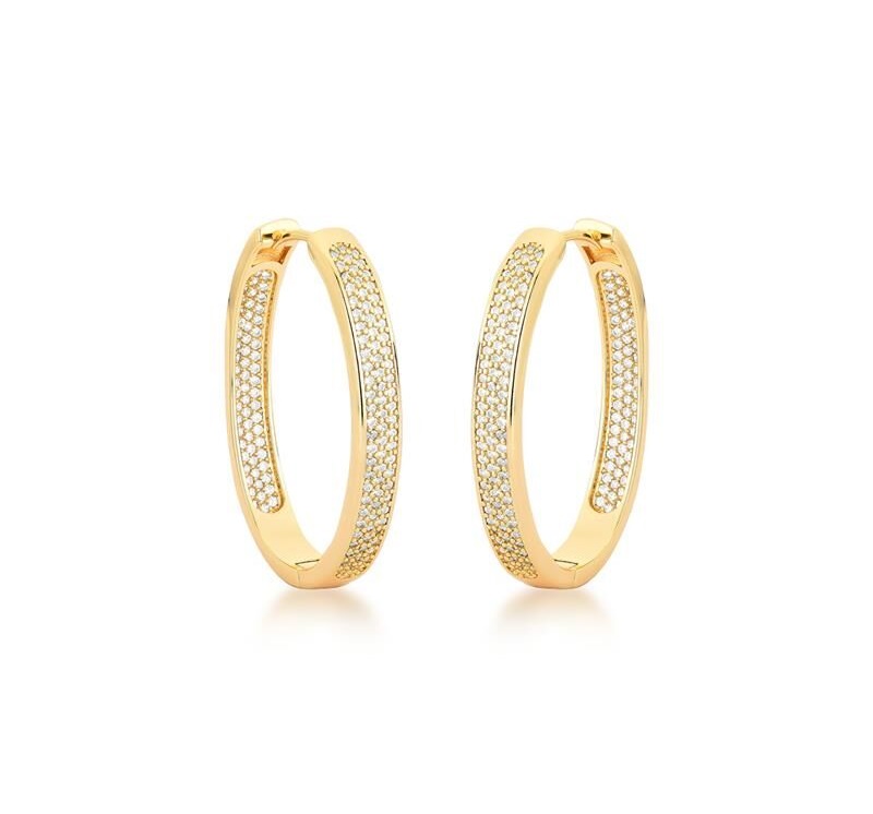 ARGOLA OVAL G COM CRAVAÇÃO INTERNA E EXTERNA BANHADA A OURO