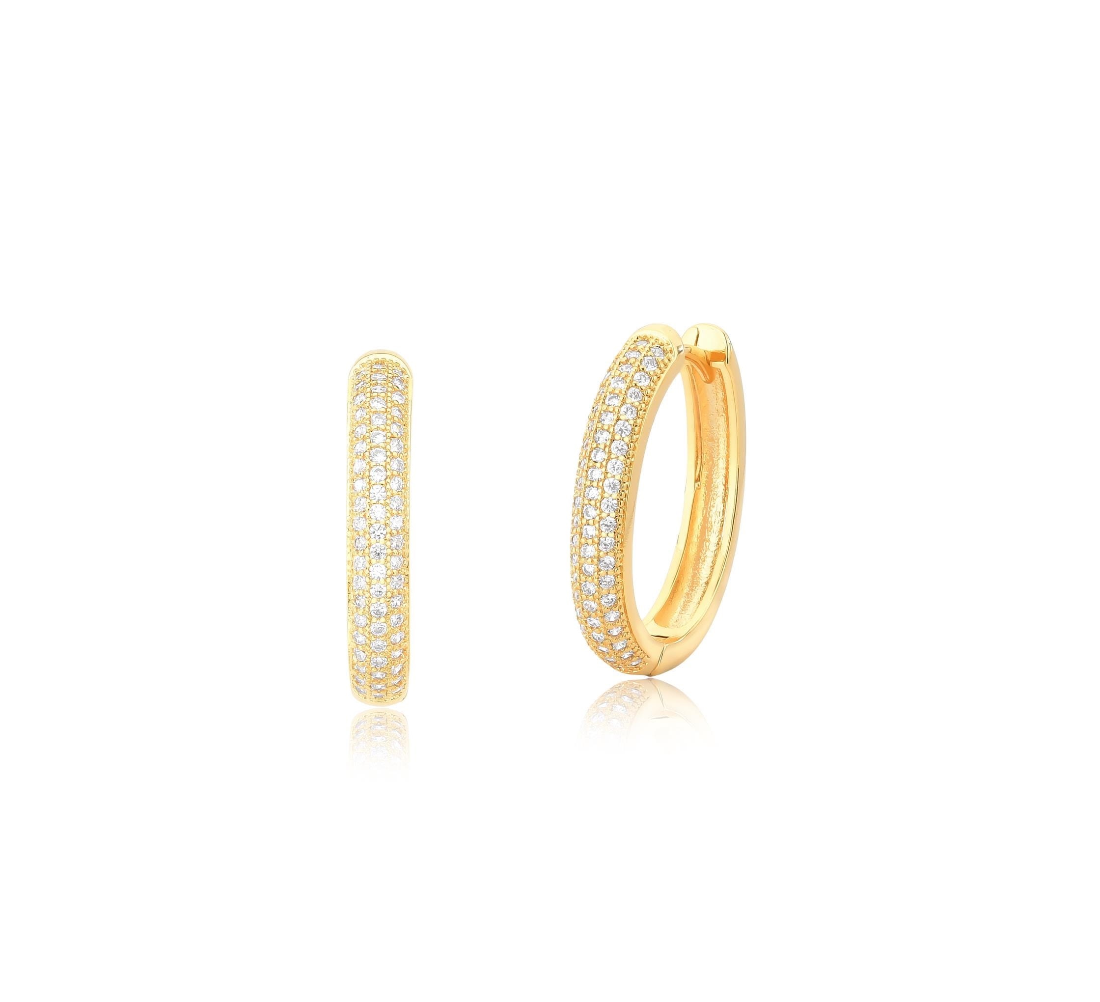ARGOLA OVALADA COM CRAVAÇÃO FRONTAL BANHADA A OURO