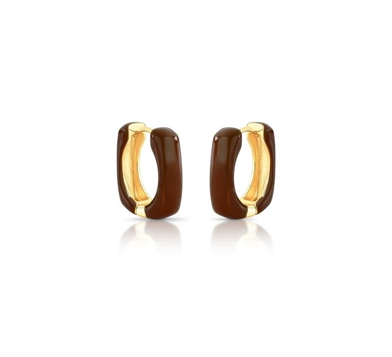ARGOLA RETANGULAR ESMALTADA MARROM BANHADA A OURO