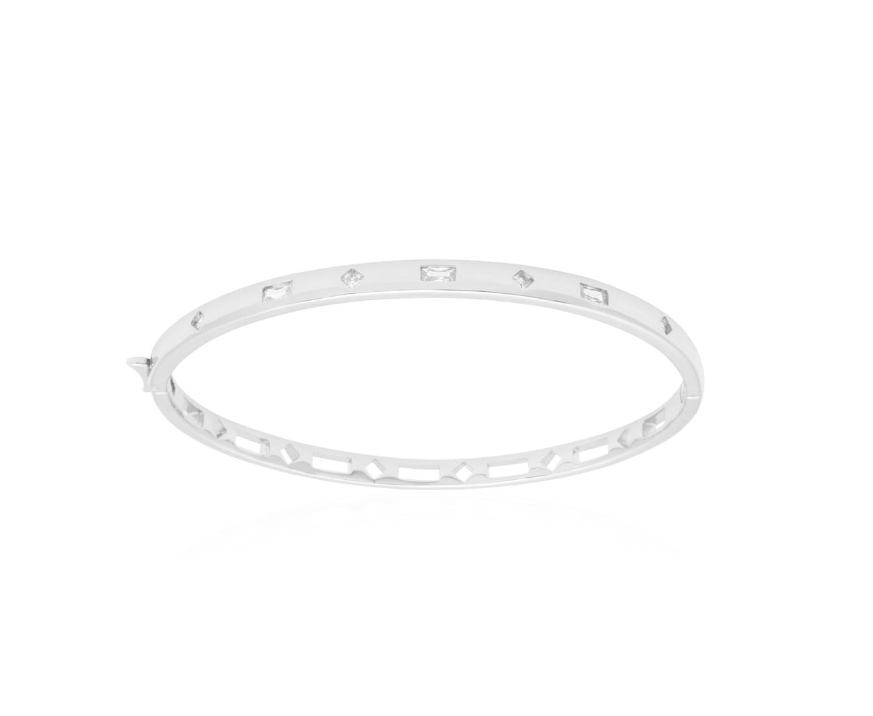 BRACELETE COM CRAVAÇÃO FRONTAL GEOMÉTRICA BANHADO A RÓDIO BRANCO
