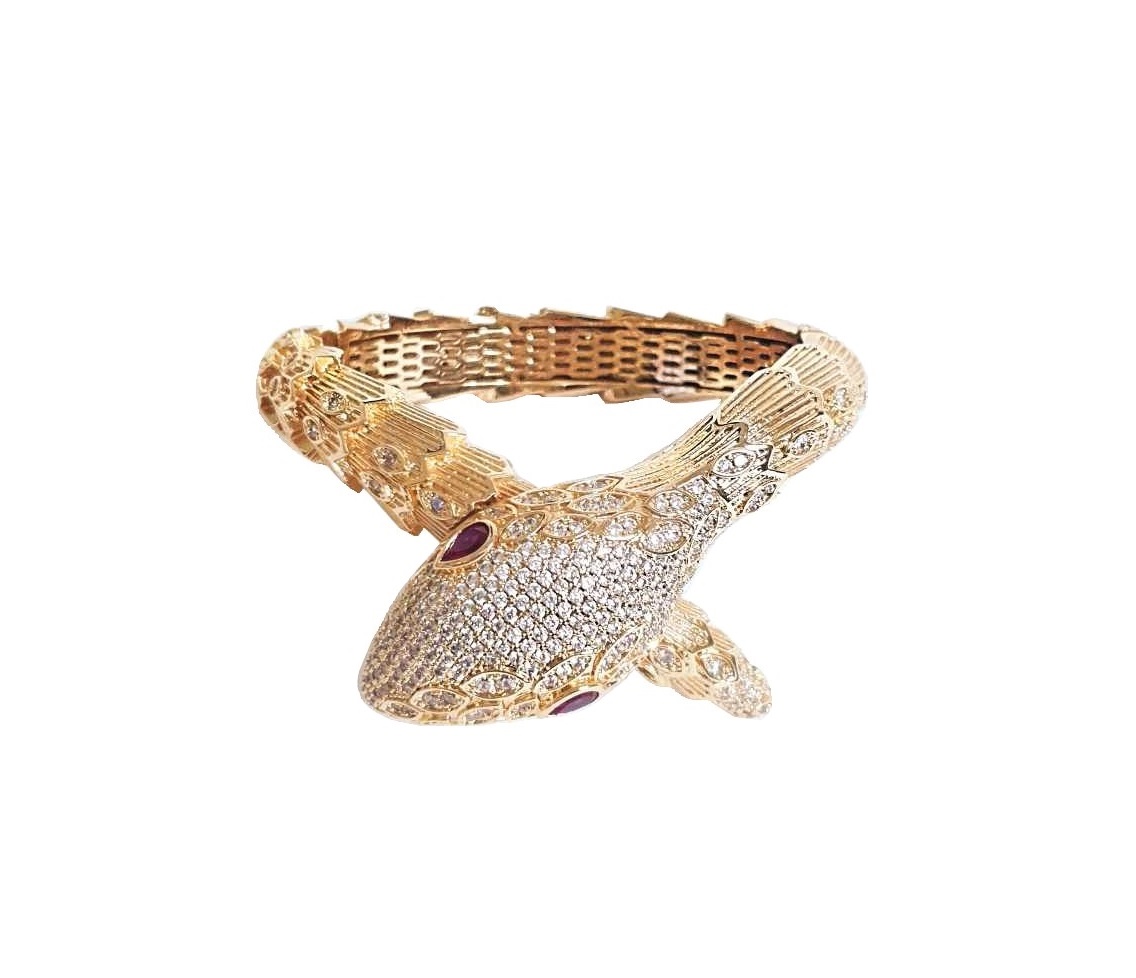 BRACELETE SERPENTE CRAVEJADA BANHADO A OURO
