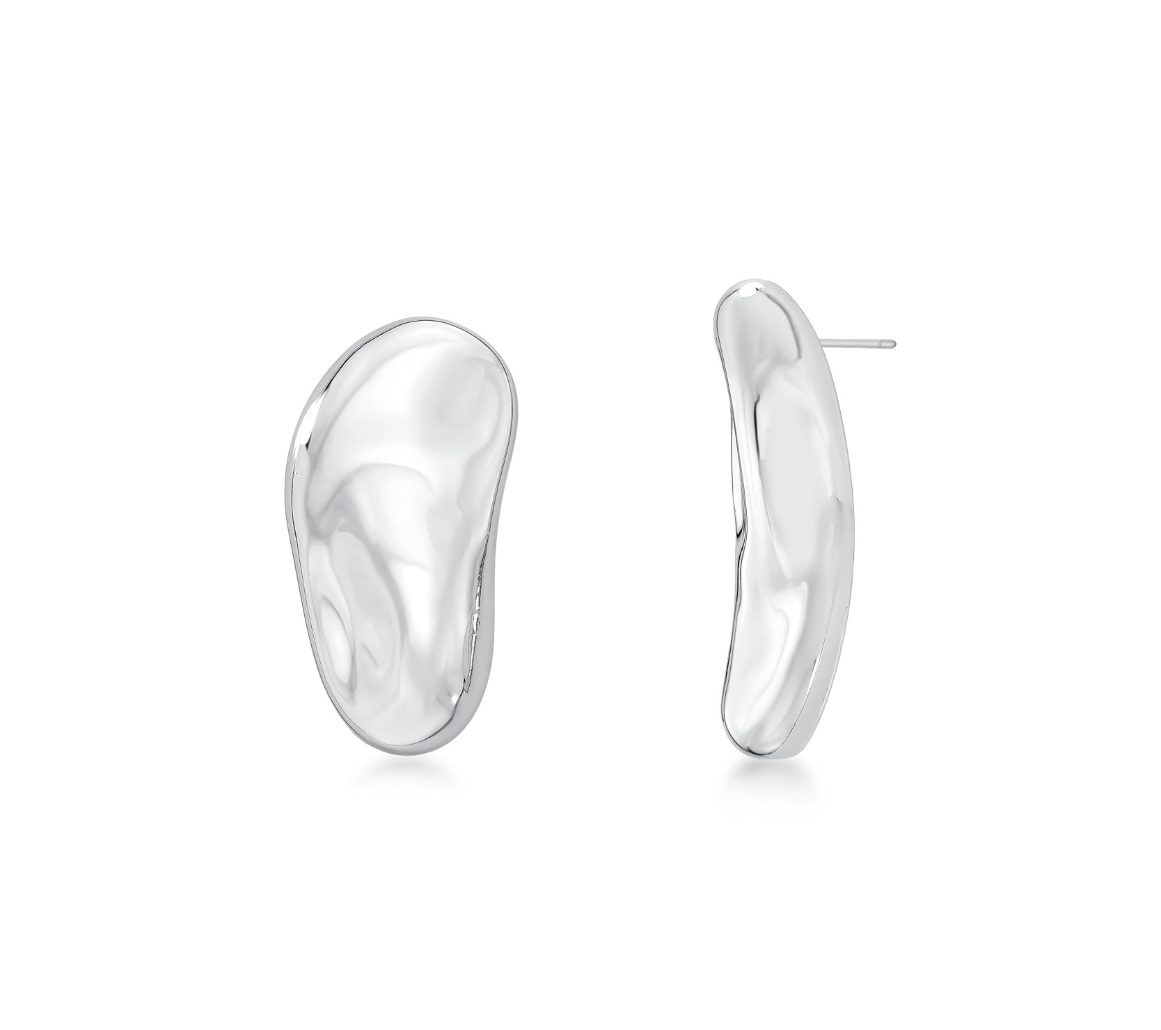 BRINCO ASSIMÉTRICO OVAL LISO BANHADO A RÓDIO BRANCO