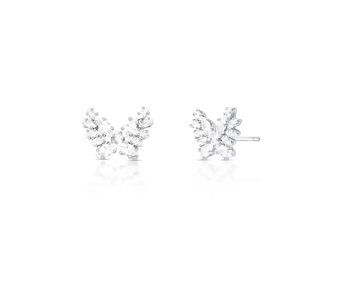Brinco Borboleta com Cravação Navete Banhado a Ródio Branco