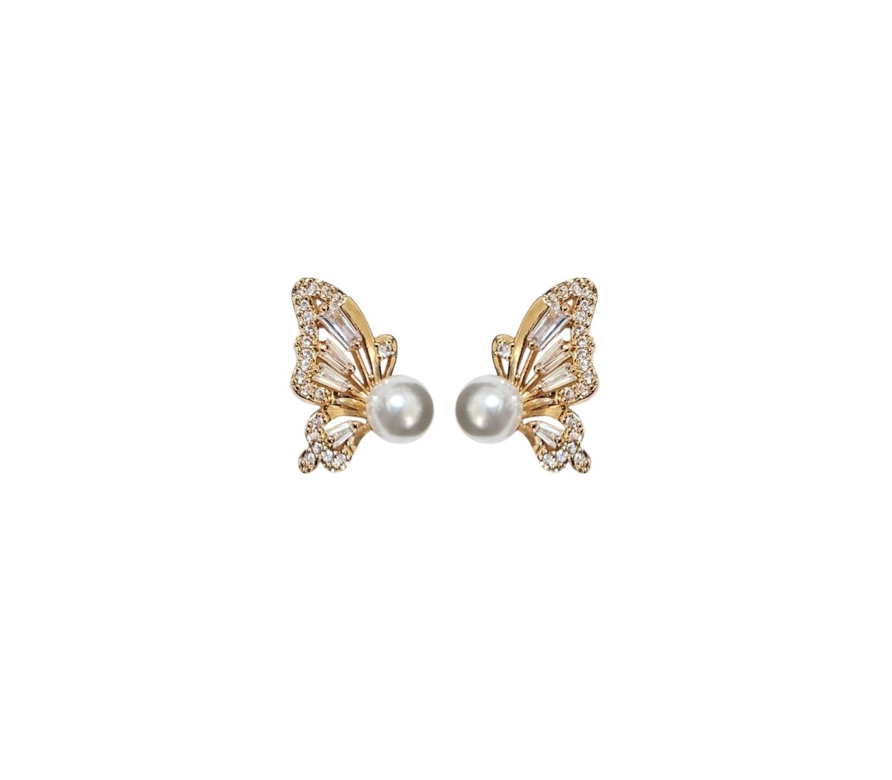 BRINCO BORBOLETA COM PÉROLA BANHADO A OURO