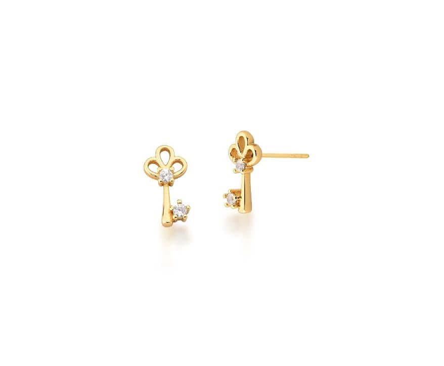 BRINCO CHAVE COM PONTOS DE ZIRCÔNIAS CRISTAIS BANHADO A OURO